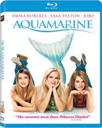 The Aquamarine Blu-ray Disc contains several extra features. Director Elizabeth Allen provides a 5-second into to the movie. An AUDIO COMMENTARY is provided by director Elizabeth Allen and producer Susan Cartsons. This is an interesting chat as they know that younger viewers may be listening, so they tailor the talk for that crowd. They describe filmmaking in very basic and general terms, but they do a fine job of painting a picture of what it's like to be on-set. They talk about the unique challenges presented by shooting the film in Australia and by having a cast which could only work so many hours in a day. Actors Emma Roberts, JoJo, and Sara Paxton provide a giggle-strewn Scene Specific Commentary for 7 selected scenes. The DVD contains 6 DELETED SCENES which are essentially throw-away material. The 5-minute "Awesome Auditions" shows auditions from the film's lead actors, including an impressive look at Sara Paxton crying on cue. Production Designer Nelson Coates takes us through "Building the Capri Club" (3 minutes). We get a look at the special effects of Aquamarine's tail in "Mermaid Makeover" (3 minutes). In "It's All About the Fashion", costume designer Sally Sharpe talks about the clothes in the movie. "Boys on the Brain" (2 minutes) has Roberts, JoJo, and Paxton asking Australian boys about relationships. The extras are finished off by "Aqua's Squeals", which is a 1-minute montage of Paxton making odd noises and a gag reel called "Kickin' It on Set" (5 minutes).