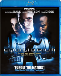 Equilibrium is scary because it could happen on Blu-ray Disc courtesy of Miramax/Echo Bridge Entertainment. The film has been letterboxed at 1.78:1 and the Disc contains an AVC 1080p HD transfer which runs at an average of 28 Mbps. The film was originally framed at 2.35:1, so there is definitely some missing information here. While I never noticed any crazy pan 'n scan effects, I did get the definite sense that things were happening on the left or right sides of the frame which I was missing. That aside, the image is sharp and clear, showing only a light sheen of grain and no defects from the source material. The colors look good and the image actually has a nice level of detail. It's too bad that we're not seeing the whole picture. The Disc contains a DTS-HD Master Audio 2-channel track which runs at 48 kHz and an average of 1.8 Mbps. The box claims that this is a stereo track, but the Disc clearly contains more than that. The bulk of the audio does come from the front and center channels, and there are no surround effects. However, there are subwoofer effects, and they add to the action scenes The dialogue is never overpowered by the sound effects or music. But, this doesn't excuse the fact that we don't get a full 5.1 track.
