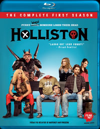 The Holliston: The Complete First Season Blu-ray Disc contains a lot of extras for a six episode series. We get AUDIO COMMENTARIES on all six episodes from Adam Green, Joe Lynch, Laura Ortiz, and Corri English. "The Road to Holliston Promos" is a series of six short segments. "The Pitch" (2 minutes) shows Green and Lynch attempting to sell the show to the suits. "Corri English Audition" (9 minutes) shows a fake (and long) audition in which Green hits on the actress. "Network Notes" (3 minutes) has an executive's young daughter critiquing the show. "Oderus Urungus Screen Test" (2 minutes) has the Gwar frontman doing lines from other movies. "Dee Snider Make-up Test" (1 minute) has the Twisted Sister sporting different looks. "On Set with Laura Ortiz" (1 minute) shows Green walking in on the actress in her dressing room. The Disc contains three DELETED SCENES, one each from "Camera Rental", "Candyman" and "Laura's Little Twitter". "Behind the Scenes" contains seven segments. "Holliston History" (3 minutes) has Green and Lynch describing the creation of the show. "Meet the Cast" (5 minutes) has a lot of on-set footage and interviews with the four main cast members. "Art Direction" (4 minutes) takes us on a tour of the sets and discusses the look of the show. This kind of examination continues in "Make-up and Wardrobe" (3 minutes). "Guest Stars" (6 minutes) has Green and Lynch discussing how they were able to use their connections to get some familiar faces on the show. "Horror Convention" (4 minutes) takes us behind-the-scenes on the last episode and offers comments on how real-life has influenced it. "Bathtub Scene" (4 minutes) looks at a specific scene from the episode "Skunked". "Sneak Peek TV Special" (20 minutes) is a feature which aired on Fearnet. It is an extended making-of which offers interviews and on-set footage. The final extra is a 6-minute reel of BLOOPERS.