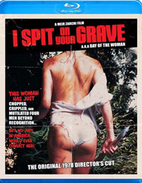 The I Spit on Your Grave Blu-ray Disc contains a few extras. We begin with an AUDIO COMMENTARY from Writer/Director Meir Zarchi. This is followed by a second COMMENTARY from Joe Bob Briggs. Joe Bob actually takes a semi-serious approach here, debating whether or not the movie takes the rapists' point-of-view, but there are also some very funny moments here. "The Values of Vengeance: Meir Zarchi Remembers I Spit on Your Grave" (29 minutes) is simply a long interview with the director. Other than clips from the movie and some stills, we only get Zarchi talking. He gives an in-depth history of the making and distribution of the film, as well as his reaction to the reaction to the movie. The stories about the business side are a bit dry, but some of his comments are interesting. "Alternate Main Title" (16 seconds), simply shows what the movie would look like with the Day of the Woman title-card. The Disc contains four TRAILERS, two for Day of the Woman and two for I Spit on Your Grave. We get three TV Spots, again one for Day of the Woman and two for I Spit on Your Grave. There are three RADIO SPOTS for Day of the Woman. Finally, we get a POSTER & STILL GALLERY.