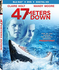 Unlike the DVD, we do get some extra features here. We begin with an AUDIO COMMENTARY from Director Johnnes Roberts and Producer James Harris. "Unexpected Originality: The Making of 47 Meters Down" (11 minutes) takes us on-set with Roberts to hear about the inspiration for the script, while Moore and Holt share their thoughts on the story. We learn that all of the sharks here are CG (thank you!) and that it was shot in the water. So, here's a belated kudos on how good the sharks look.