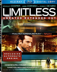 Bradley Cooper stars in Limitless Eddie Morra, a novelist who has gotten a contract to deliver his first novel, but the words won't come. Eddie, who looks like a homeless man, lives a pitiful life, and thus, his girlfriend, Lindy (Abbie Cornish). Walking home from this, Eddie runs into his ex-brother-in-law, Vernon (Johnny Whitworth), who offers him an experimental drug called NZT. Immediately after taking NZT, Eddie feels smarter and more focused. He finishes his novel in a matter of hours and delivers it to his publisher. While at a party, finances comes up and Eddie begins to spout theories. He then gets money from a loan shark and dabbles in day trading -- which quickly earns him millions and the attention of power broker Cal Van Loon (Robert De Niro). Eddie is on top of the world, but then the side effects begin and he realizes that NZT may be as dangerous as it is powerful.