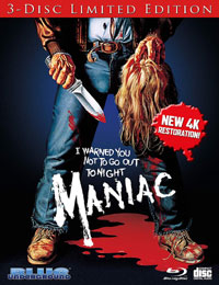 The Maniac Blu-ray Disc contains an assortment of extras. We begin with an AUDIO COMMENTARY from Director/Co-producer William Lustig and Co-producer Andrew W. Garroni. A second COMMENTARY features Lustig, special effects make-up artist Tom Savini, Editor Lorenzo Marinelli, and Joe Spinell's assistant Luke Walter. "Ann and the Killer" (13 minute) is an interview with actress Caroline Munro, who discusses her career and how she became involved in the film, including how she first met Joe Spinell. Special effects makeup artist Tom Savini is interviewed in "The Death Dealer" (12 minutes), where he talks about the gore effects in the film and how he worked within the limited budget. This includes some stills of the effects from Savini's collection. "Dark Notes" (12 minutes) profiles composer Jay Chattaway who talks about how he tried to have the music in the film reflect the character's feelings and motivations. "Maniac Men" (11 minutes) is an attempt by Lustig to dispel the myth the Michael Sembello's song "Maniac" from Flashdance was influenced by his film. Sembello and follow composer Dennis Matkosky set the story straight. The Disc includes seven THEATRICAL TRAILERS, two from the U.S. and five from other territories. We get nine TV SPOTS, which run about 3 minutes. We also get four RADIO SPOTS (which are obviously audio only). "Mr. Robbie: Maniac 2 Promo Reel" (7 minutes) shows Spinell playing a TV clown. This was presumably made to raise interest in a sequel, but no explanation is given. The DVD packed in this 2-disc set contains additional extras. "The Joe Spinell Story" (49 minutes) is a documentary which explores the life of Spinell. Through comments from family, friends, and co-workers, we get a picture of what Joe was like and how he worked. There is also a nice amount of photos and footage of Spinell at work. "Maniac Publicity" contains seven examples of Spinell, Munro, and Lustig doing interviews on TV shows (including the immortal The Joe Franklin Show) and at film festivals. There is nearly two hours worth of material here. "Maniac Controversy" offers five TV news stories in which the film is maligned or attacked. (Although, in fairness, Gene Siskel's report is more about how movie's are publicized than about Maniac itself.) The "Gallery of Outrage" contains quotes lifted from reviews of and articles about Maniac.