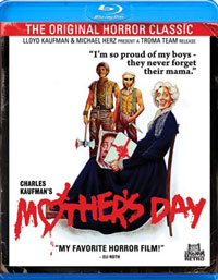 The Mother's Day Blu-ray Disc contains several extras. The film opens with a two-minute introduction from Director Charles Kaufman, who makes some comments about the movie and then tells us about the bakery he now runs. We get an AUDIO COMMENTARY with Kaufman and Assistant Art Director Rex Piano, which opens with a video introduction from Piano. "Super 8 Behind the Scenes of The Original Mother's Day" (10 minutes) is test footage for some of the special effects and stunts. This includes close-ups of something which is only glimpsed in the finale. This footage is accompanied by commentary from Kaufman. "Ike, Adley, and Eli: Eli Roth on the Subversive Political Subtext of Mother's Day" (13 minutes), which is called "Eli Roth's Mother's Day Commentary" has the over-rated director talking about his love for the movie, how it influenced his work, and the hidden meanings of the film. "Mother's Day at Comic-Con" (8 minutes) has Kaufman and remake director Darren Lynn Bousman talking about the movie, were Bousman basically interviews the Kaufamn, asking questions about the original film. The extras are rounded out by the ORIGINAL TRAILER for the movie.