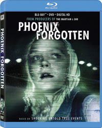 The Phoenix Forgotten Blu-ray Disc contains a few extra features. We start with an AUDIO COMMENTARY with Co-Writer/Director Justin Barber, and cast members Florence Hartigan, Chelsea Lopez, and Justin Matthews. "Sophie's Story" (3 minutes) is an artificial TV news story which uses footage from the movie and an interview with "Sophie" to give an overview of the film's story. "Phoenix Found" (7 minutes) is a brief making-of featurette which contains comments from the filmmakers who mention the real-life story and how it inspired their movie, but we don't get to see the real footage. The final extra is a THEATRICAL TRAILER for the film.