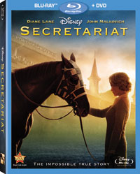 The Secretariat Blu-ray Disc contains an assortment of extras. We begin with an AUDIO COMMENTARY from Director Randall Wallace. "Heart of a Champion" (15 minutes) is a mini-documentary which examines Secretariat's career. Using real footage of Secretariat's races (including most of the Belmont in its entirety) and interviews with the real people who are characterized in the movie, we learn just how unusual and special this horse was. (It's sort of chilling and moving when they show Secretariat's grave.) "Choreographing the Races" (6 minutes) takes us behind the scenes to show how the horse action was photographed for the film. "A Director's Inspiration: A Conversation with the Real Penny Chenery" (21 minutes) has Wallace and the real-life horse owner talking about the reality of the film and what it was like to capture her life story. The Disc contains seven DELETED SCENES which run about eleven minutes and can be viewed with optional commentary from Wallace. Wallace says in his intro that he doesn't like to waste film, so there's nothing groundbreaking here. "Multi-angle Simulation" offers five different views of the Preakness with commentary from jockey Mike Smith. The final extra is the MUSIC VIDEO for the song "It's Who You Are" by AJ Michalka.