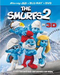 The Smurfs 2 really brings it with the duck jokes on Blu-ray Disc courtesy of Sony Pictures Home Entertainment. The film has been letterboxed at 1.85:1 and the Disc contains an AVC 1080p HD transfer which runs at an average of 24 Mbps. The image is very sharp and clear, showing no grain and no defects from the source material. The colors look fantastic, with the blues dominating, of course, and the image is never overly dark or bright. The level of detail is excellent (again, look at the Smurf's hats) and the depth is good, even in the 2D version. The Disc carries a DTS-HD Master Audio 5.1 track which runs at 48 kHz and an average of 2.5 Mbps. The track provides clear dialogue and sound effects. The stereo effects are very good, most notably during the opening where we can hear the voice of various Smurfs coming from the right or left channels. The surround sound effects are nicely done during the action scenes, and some of the effects are very detailed. The subwoofer effects add oomph! to Gargamel's magic, but they are never overpowering. This set also includes a Blu-ray 3D which has the film letterboxed at 1.85:1 and contains an AVC 1080p HD transfer which runs at an average of 23/11 Mbps. The 3D here is very, very impressive. The depth is amazing and the characters are always clearly separate from the background. This version takes many opportunities to "throw" things at the screen and these effects are superb. This Disc carries the same audio as the 2D Disc.