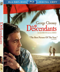 The Descendants Blu-ray Disc contains a number of extras. The Disc contains two DELETED SCENES which run about 6 minutes, which includes text introductions from Payne. One is nearly identical to the one in the film, while the second offers a new scene between Matt and Alexandra. The other actors talk about their experiences working with Clooney in "Everybody Loves George" (7 minutes). "Working with Alexander" (14 minutes) contains an interview with Payne, who describes his work on the film and his devotion to his crew, and comments from the cast and crew, who talk about Payne's working style. "The Real Descendants" (12 minutes) is an interview with Jack Morgan, who describes how his family came to own a very large parcel of land in Hawaii -- very similar to the story in the film. "Hawaiian Style" (17 minutes) looks at some of the unique aspects of making a movie in Hawaii, including a blessing of the movie by an Hawaiian priest. Payne talks about how the actors were chosen for the film in "Casting" (8 minutes), including the use of locals. "Working with Water" (11 minutes) has Payne describing the challenges of shooting scenes which take place in a boat. The Disc contains MUSIC VIDEOS for three songs which are featured in the film. "Waiting for the Light" (3 minutes) is simply a reel of on-set footage as the crew waits for the sun to be at the right angle. "The World Parade - Hawaii" (10 minutes) is a silent newsreel which shows life in Hawaii. "A Conversation with George Clooney and Alexander Payne" (12 minutes) is an interview in which the pair discuss various topics. The extras are rounded out by the THEATRICAL TRAILER for the film.