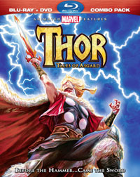 The Thor: Tales of Asgard Blu-ray Disc contains a few extras. We begin with an AUDIO COMMENTARY from Supervising Producer Craig Kyle and Screenwriter Greg Johnson. This is followed by a second COMMENTARY from Supervising Director/Producer Gary Hartle, Director Sam Liu, and Character Designer Phil Bourassa. "Worthy: The Making of Thor: Tales of Asgard" (22 minutes) contains interviews with the creative team behind the movie who talk about their approach to the project, the origin of the story, character design and the look of the movie, the animation, and the music. It's interesting to note that they openly admit that Thor: Tales of Asgard was made to tie in with the Thor feature film. (There's no behind-the-scenes of the voice cast, which we usually get on things like this.) The final extra is an episode of the television show The Avengers: Earth's Mightiest Heroes which focuses on Thor and Loki.